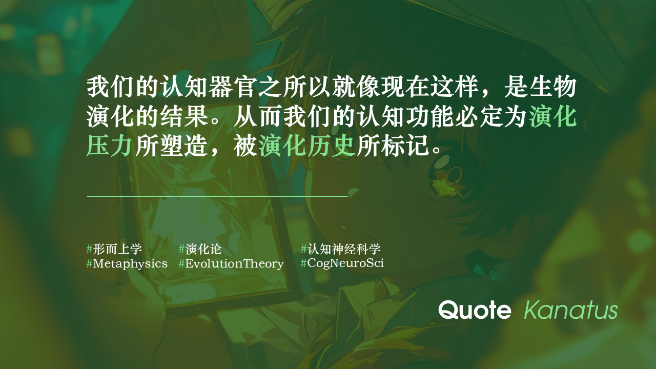 光是这种逐代修正足够让形而上主义者感到不安,这种演化生物学意味着视觉系统之所以是现在这个样子不仅仅只是因为视觉认知是个好东西,而更是它总体上提高了也需要去提高生物体的存活率,否则考虑到处理速度和视觉成像精度是一个权衡取舍,视觉成像精而处理速度过慢反而会降低存活可能性。